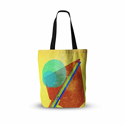 KESS InHouse Frederic Levy-Hadida "Landing" Blue Yellow Mixed Media Geometric Everything Tote Bag, 16" x 16", Multicolor