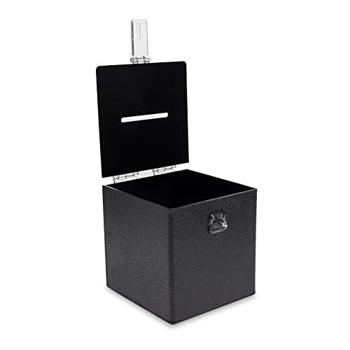 Source One BLACK Cube Donation Box With HASP Suggestion Registration Raffle Bin (6 Inch)
