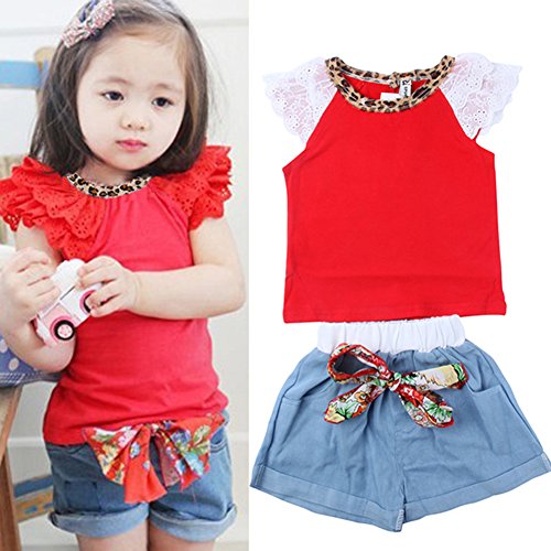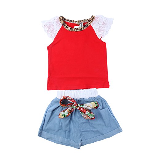 -. Title : WXBUY Kids Girls Ruffled Sleeves T-shirt+ Bow-knot Jeans Pants Outfits