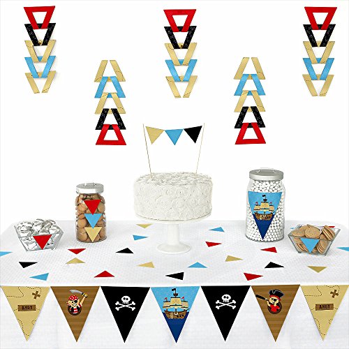 Studio : Big Dot of Happiness, LLC Publisher : Big Dot of Happiness, LLC Product Description Don't be a square and go with the standard party decorations this year. Try out a Ahoy Mates! Pirate Triangle Party Decoration Kit for your next get together. With 72 pieces of themed party decorations, you'll have plenty of cheer to spread around. 0