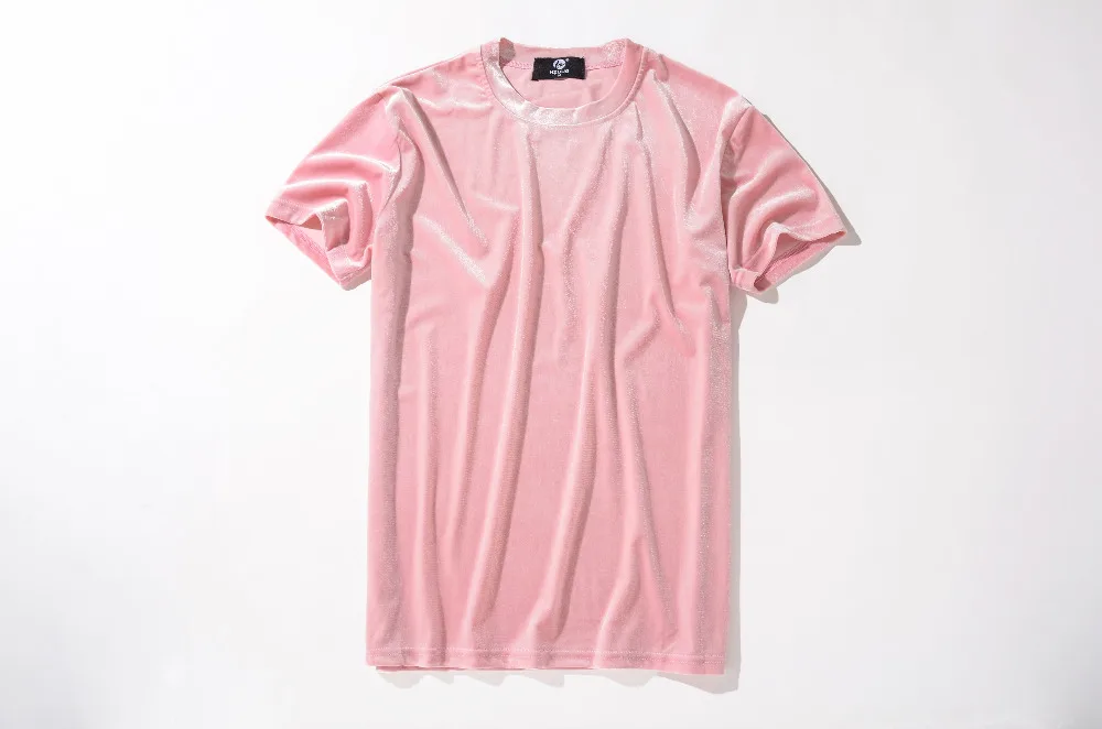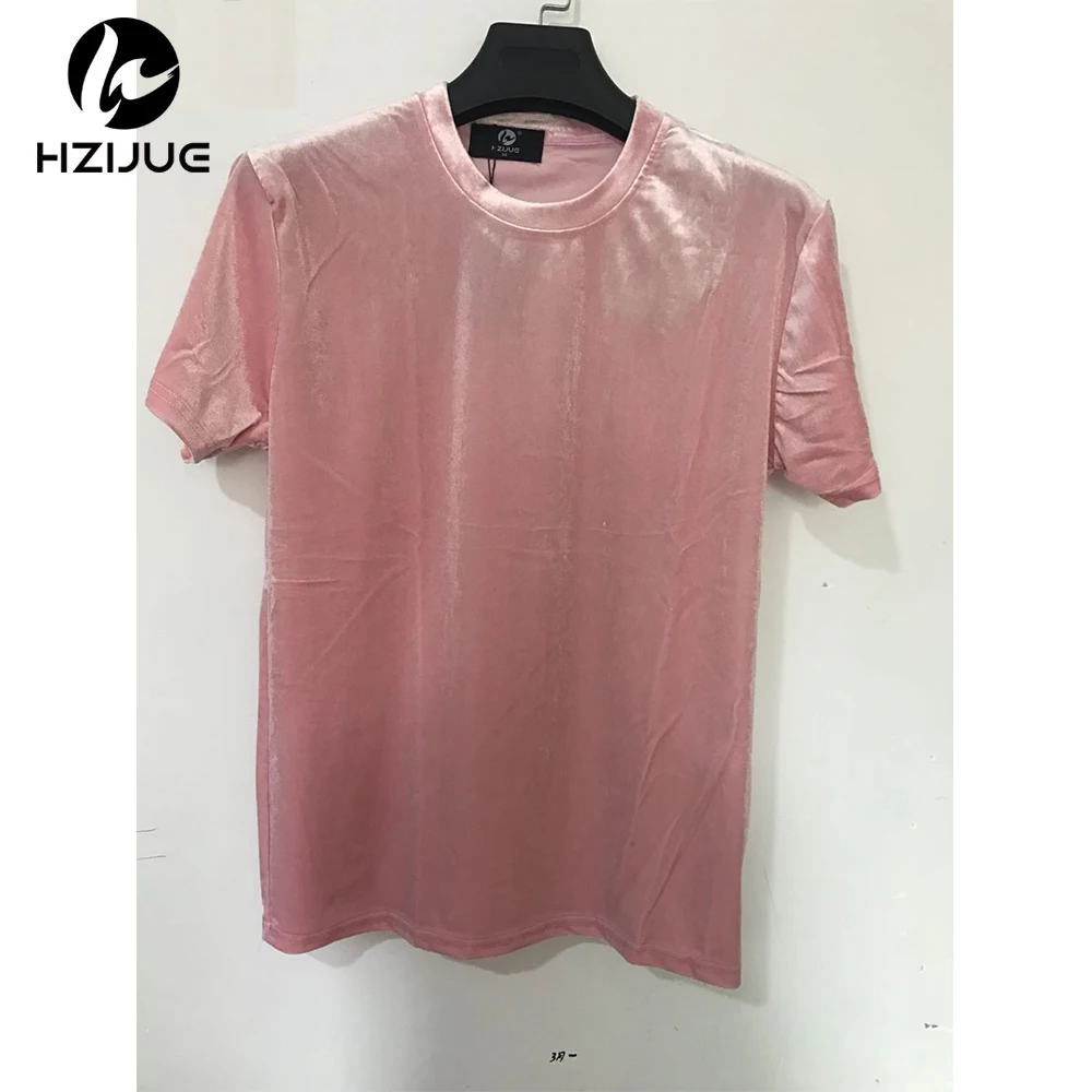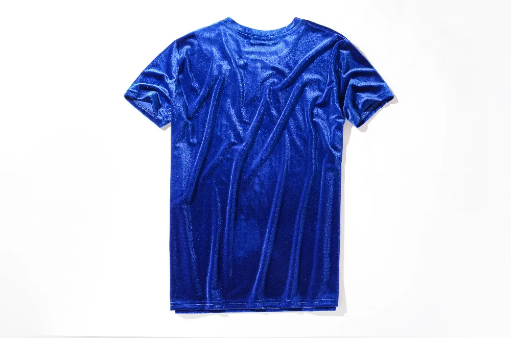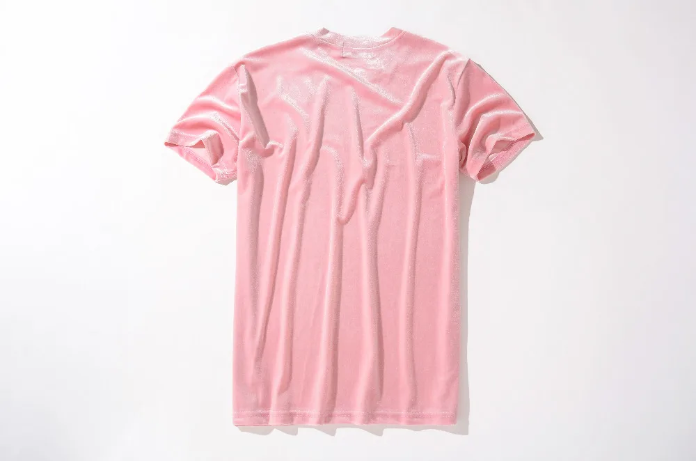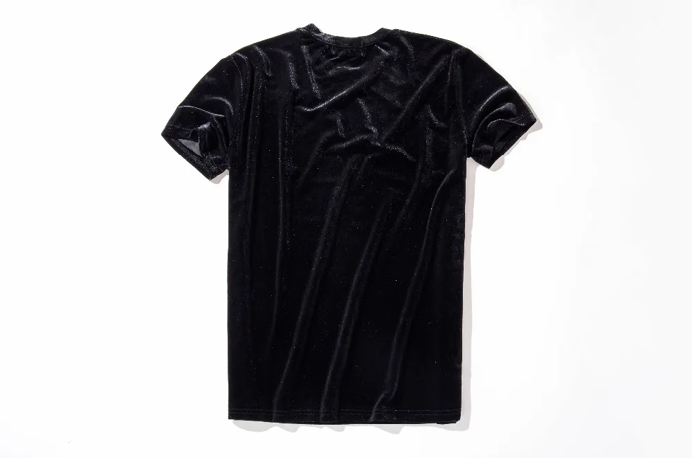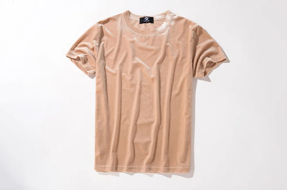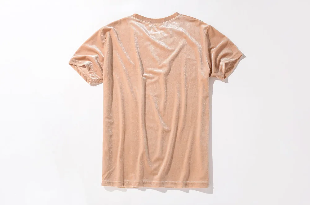 Velvet Fabric tops:solid summer Velour T Shirt