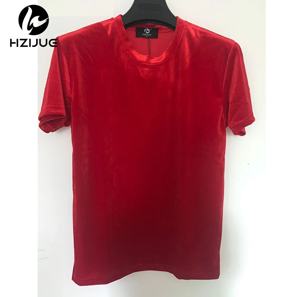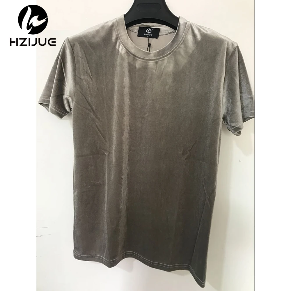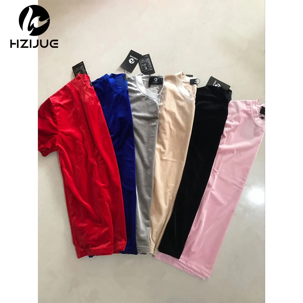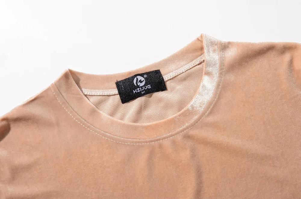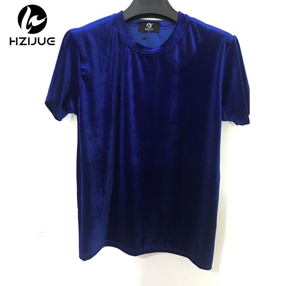 Velvet Fabric tops:solid summer Velour T Shirt