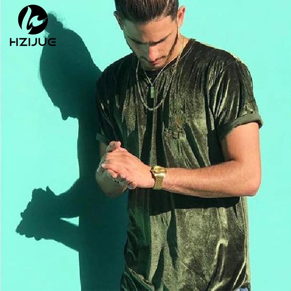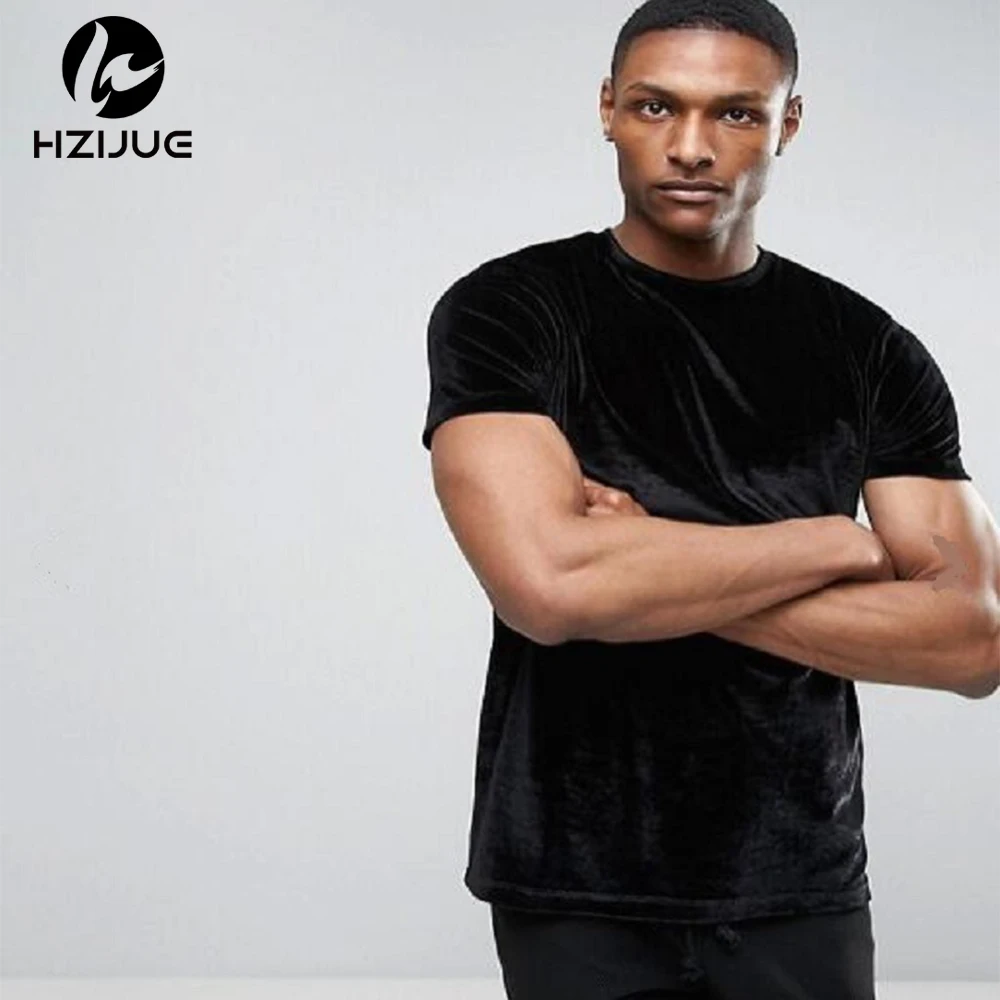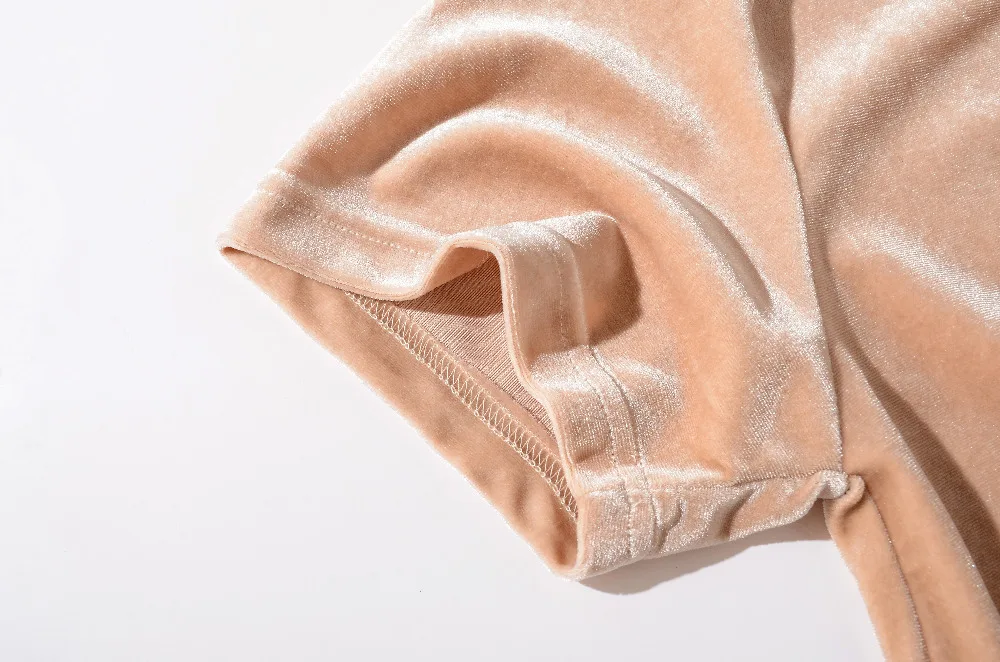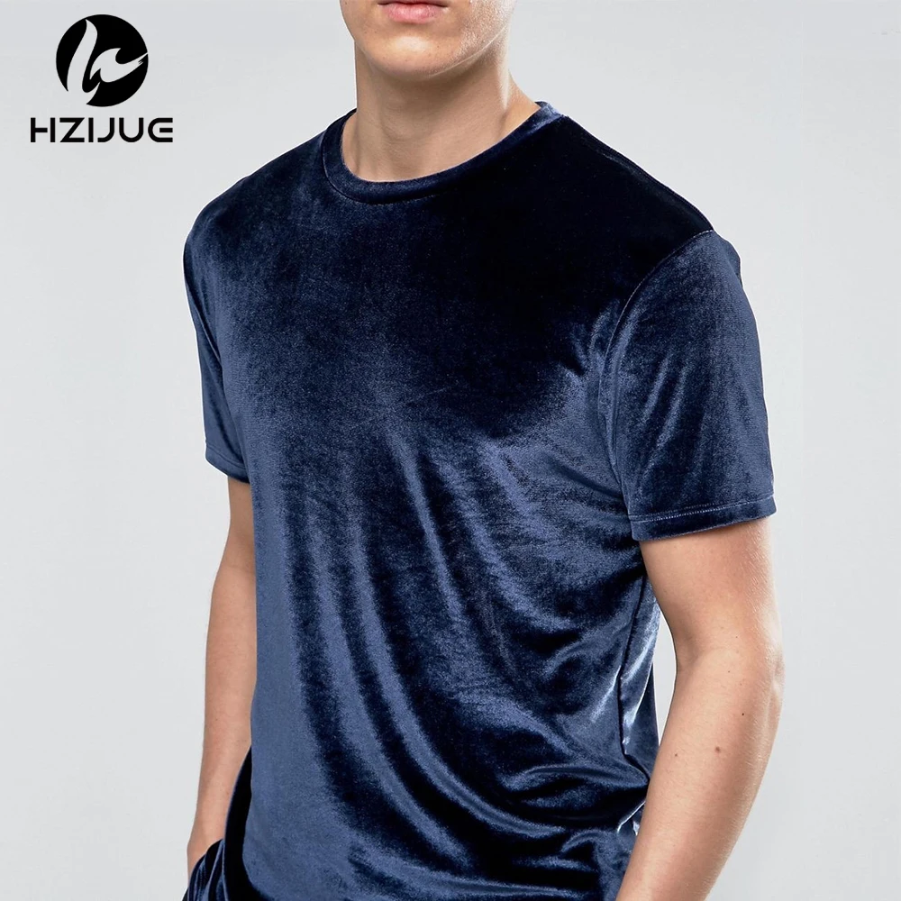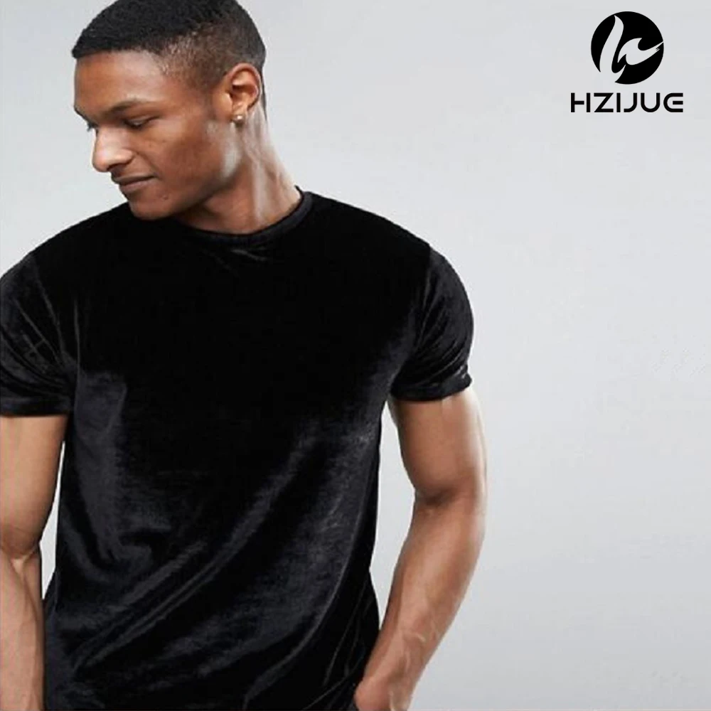 Velvet Fabric tops:solid summer Velour T Shirt