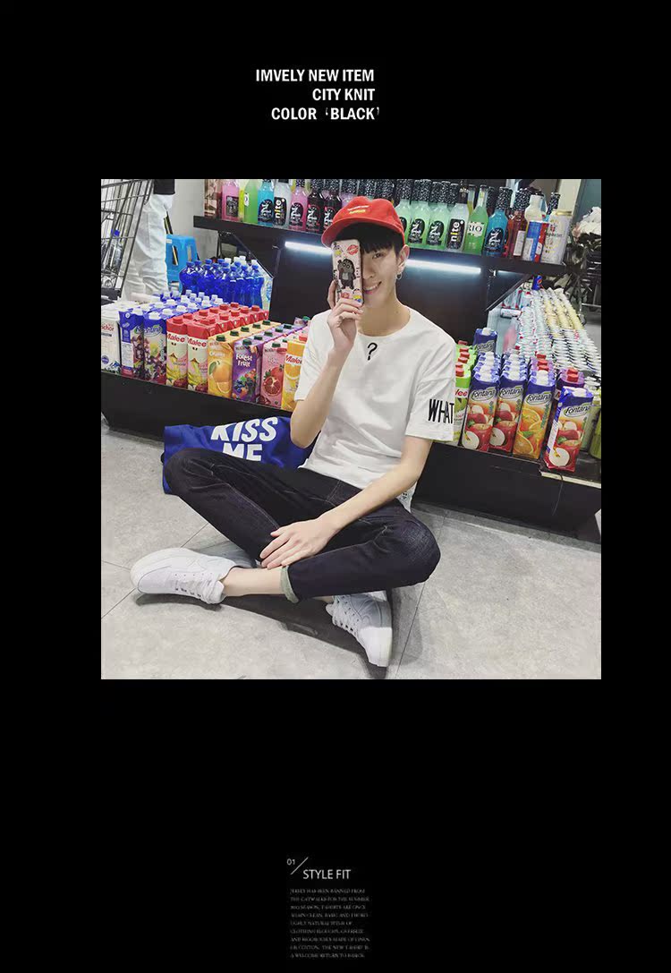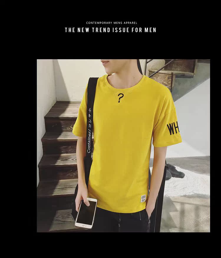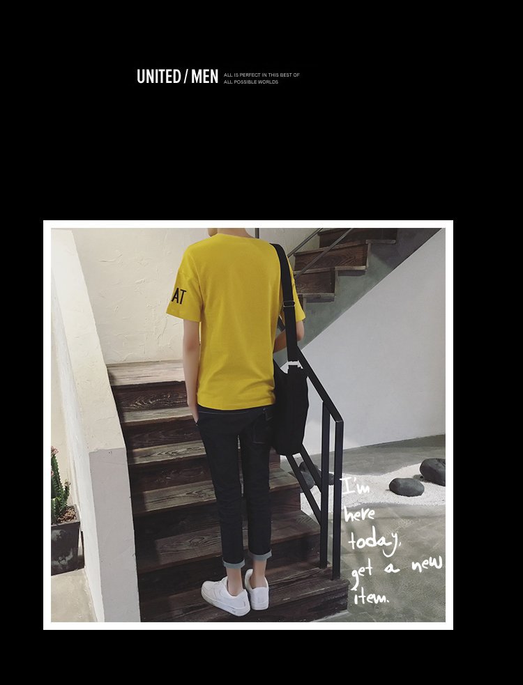 2016夏季新款男士韩版修身短袖T恤青少年字母