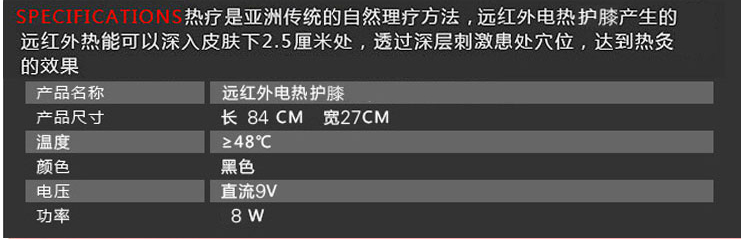 specifications Hyperthermia / far infrared heat therapy Asian traditional natural methods / far infrared heating kneepad generated / can drill down / Skin 2.5 cm at / through deep / stimulate the affected area points / reach hot moxibustion effect