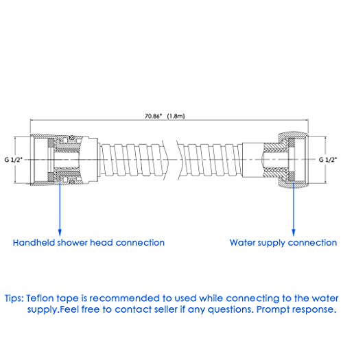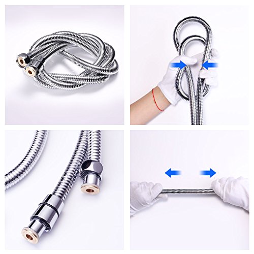 Charmingwater 70 Inch Shower Hose, Explosion-proof Long Double Stainless Steel Replacement Shower Hose with Brass Fittings, Chrome Finish
