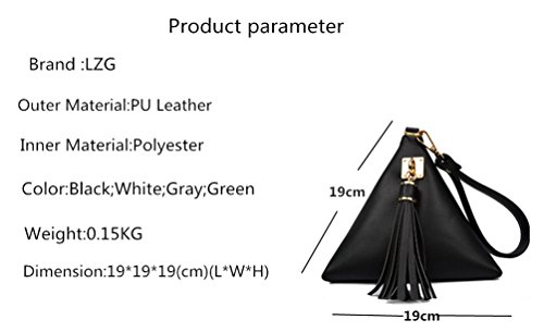 -. Brand : LZG -. Department : womens -. Feature : Fabric:PU leather;Lined: Polyester / Dimension:19*19*19(L*W*H)(CM)/7.5*7.5*7.5(L*W*H)(in) Include a main compartment. / The clutch bag come with an removable wrist strap.So you can use it as a clutch bag or a hand wallet / Triangle design with tassel, with zip closure to store your important belongings. / There may be a little color difference due to different computer display.And it is perfect for working,dating,party and shopping,etc. -. ProductGroup : Shoes -. ProductTypeName : HANDBAG -. Title : LIZHIGU Women's PU Leather Clutch Wallet Triangle Wristlet Purse With Wrist Strap