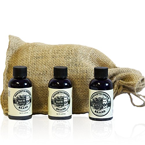 THREE BOTTLES OF OUR MOUNTAINEER BEST. The first three Beard Oils Mountaineer Brand ever made are included in this burlap sack for you to try all at once. You get 1 two ounce bottle each of WV Timber (Clean and Woodsy scent), WV Coal (Fresh, Earthy Scent) and WV Barefoot (unscented)
