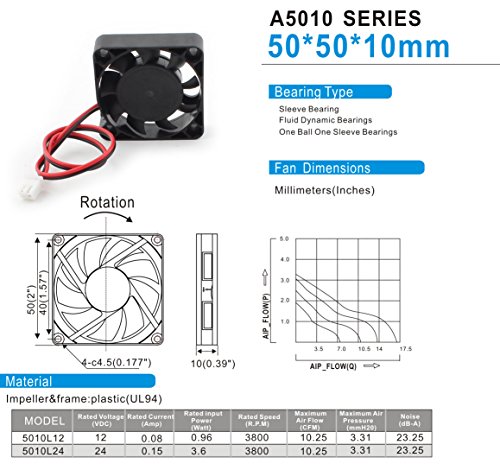 Copapa 5010 50x50x10mm 2-Wire Cooling Fan Black for PC Case Cooler Set of 5 (DC12V)