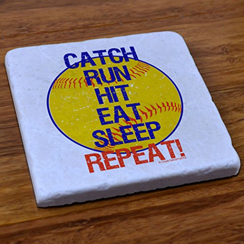 -. Title : ChalkTalkSPORTS Catch Run Hit Eat Sleep Repeat - Stone Coaster