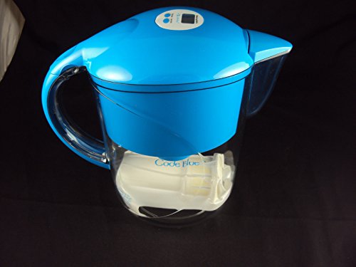 -. Brand : CODE BLUE -. Color : Blue -. EAN : 0638183661062 -. Feature : WATER FILTRATION : Purifies tap water and removes harmful poisons. / DIGITAL : Digital readout monitors filter life and alerts when change is needed. / EFFECTIVELY REMOVES dozens of unhealthy contaminants. / EACH FILTER PROCESSES approximately 40 gallons of water. -. IsAutographed : 0 -. Label : Code Blue -. Manufacturer : Code Blue -. ProductGroup : Kitchen -. ProductTypeName : KITCHEN -. Publisher : Code Blue -. Studio : Code Blue -. Title : Code Blue Water Filtration 2 Quart Pitcher with Filter. -. UPC : 638183661062