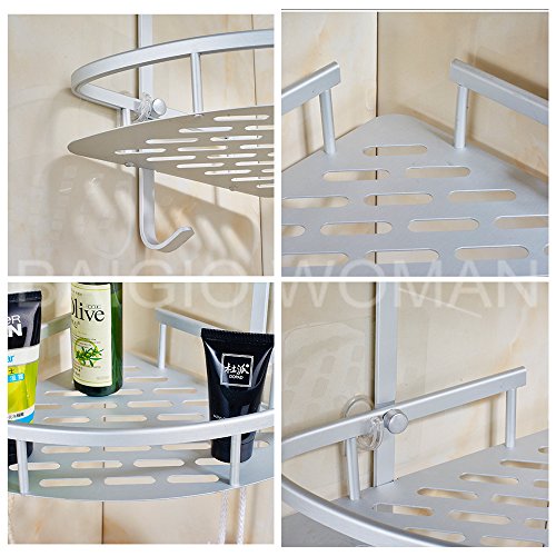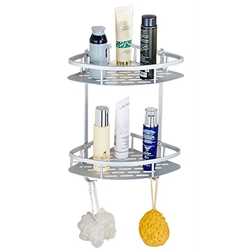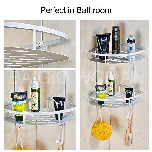 Bathroom Corner Shelf Rack No Drilling Aluminum 2 Tiers Shower Storage Corner Shelves with Hooks