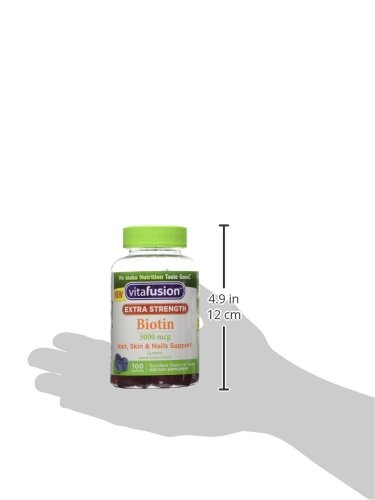 The new Vitafusion Extra Strength line includes high potency Biotin fused into delicious gummies. Two Extra Strength Biotin gummies provide 1667% daily value (5000 mcg) of Biotin.