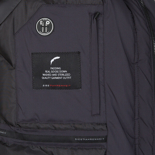 SIEG °FAHRENHEIT기능성 폴리 스트레치 원단을 사용한 벌룬형 다운으로 착용시 매우 가벼우며 보온성을 더함. 카라 부분 퍼 부착.