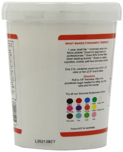 2, 5 or 10 lbs. of the Worlds Best Gourmet Fondant; Great on cakes, cookies, cupcakes; candy centers, petit fours and fruit flavors are a great activitity for kid's birthday parties. They can decorate their mini cakes, cookies or cupcakes.
