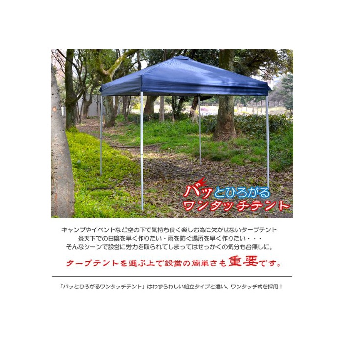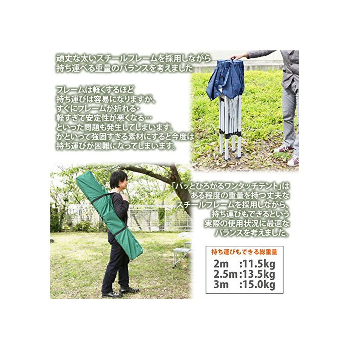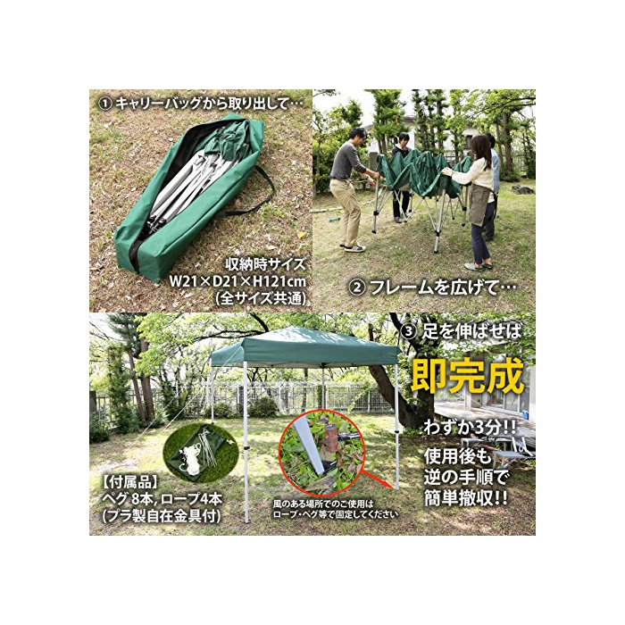 원본상품명: バッとひろがるワンタッチテント(クイックタ?プ) 2/2.5/3m ブル?/グリ?ン/ピンク ベンチレ?ション UVカット 高さ調節可