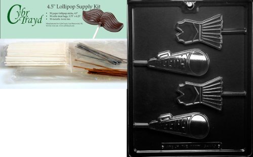 Cybrtrayd 45StK50-S110 Cheerleading Lolly Sports Chocolate Candy Mold, Includes 50 Lollipop Sticks, 50 Cello Bags, 25 Gold and 25 Silver Twist Ties