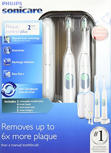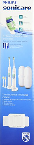 Philips Sonicare Plaque Control Plus Rechargeable Toothbrush HX6254/81 Twin Pack (2 Rechargeable Toothbrushes, 4 Brush Heads, 2 travel cases, and 2...