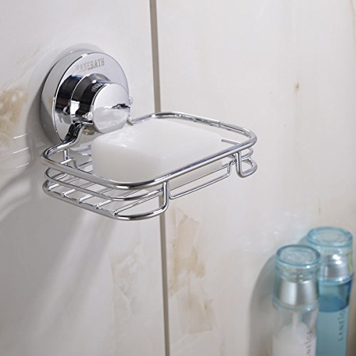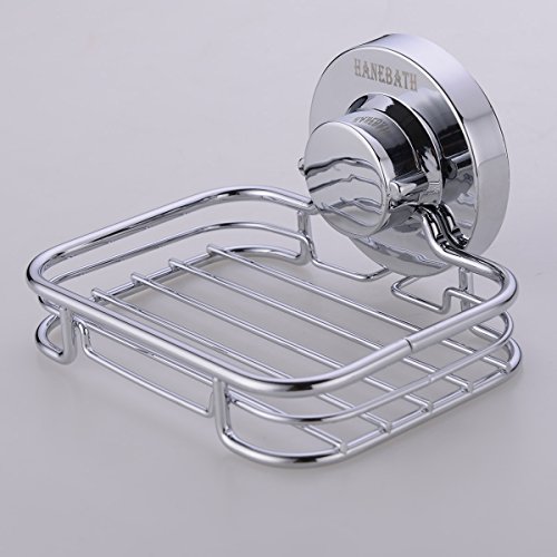 HANEBATH Suction Cup Soap Dish for Bathroom and Kitchen - Strong Stainless Steel ,Chrome
