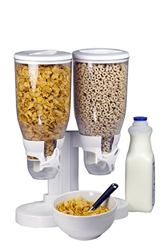 HOME BASICS DUAL CEREAL DISPENSER, FOOD DISPENSER 12" X 6" X 17.7"