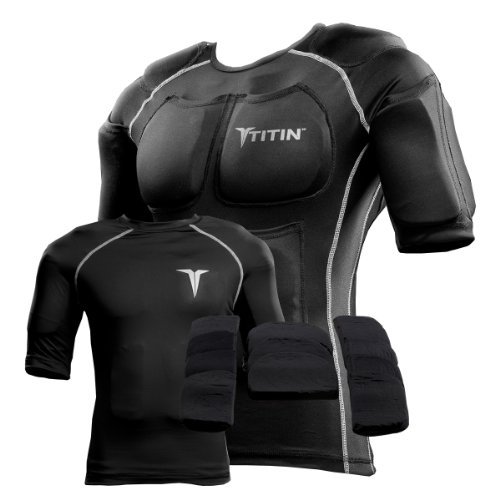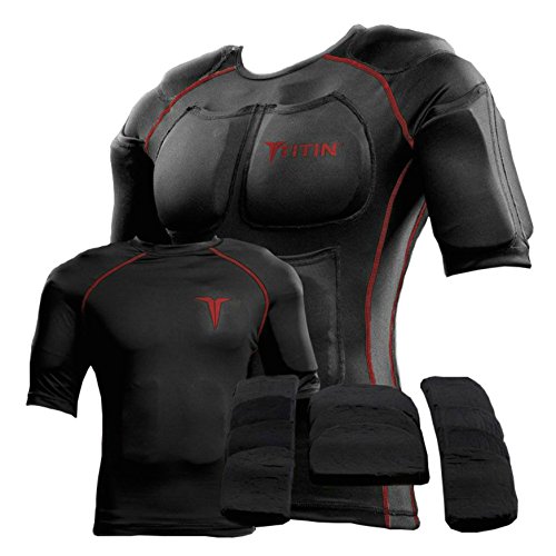 The TITIN Force Weighted Shirt System - 8 Lbs Of Hydro-Gel Inserts - 1 14-Pocket Inner Compression Shirt - 1 Outer Compression Shirt (X-Large, Black with Red Accent)