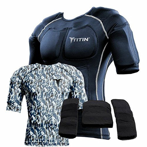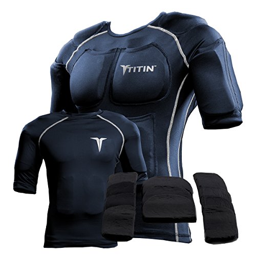The TITIN Force Weighted Shirt System - 8 Lbs Of Hydro-Gel Inserts - 1 14-Pocket Inner Compression Shirt - 1 Outer Compression Shirt (Large, Navy)