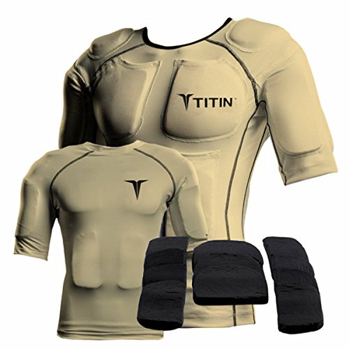 The TITIN Force Weighted Shirt System - 8 Lbs Of Hydro-Gel Inserts - 1 14-Pocket Inner Compression Shirt - 1 Outer Compression Shirt (Medium, Desert Sand)