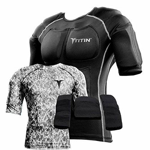 The TITIN Force Weighted Shirt System - 8 Lbs Of Hydro-Gel Inserts - 1 14-Pocket Inner Compression Shirt - 1 Outer Compression Shirt (Grey Digital Camo, Large)