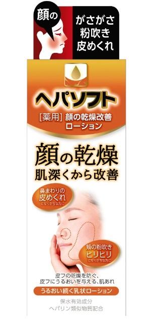「ヘパソフト 薬用顔ローション」は、肌にうるおいを与えるヘパリン類似物質配合の顔用の薬用ローションです。
