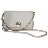 • Flap top with golden turn-lock closure; Lined interior features open slip pocket