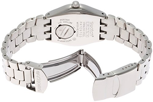 Swatch YLS197G A Traveler's Dream Puntagialla women's watch features a 33mm wide and 9mm thick solid stainless steel case with a fixed bezel and textured push-pull crown. Swatch YLS197G is powered by Swiss quartz movement. This beautiful watch also features a shiny sunray beige dial with white accents gold tone luminous hands and dot hour markers, scratch resistant acrylic crystal and water resistant to 30 meters. Swatch YLS197G is equipped with a 16mm wide solid stainless steel bracelet with a fold over safety lock clasp. Swatch YLS197G women's A Traveler's Dream Puntagialla beige dial stainless steel bracelet watch is brand new and comes in an original Swatch gift box and is backed by a 2 year store limited warranty.Feature