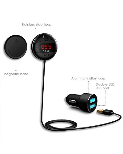 -. Title : Fm Transmitter REIIE Wireless Calling Streaming Dongle Bluetooth 4.1 Car Kit Adapter with Led Display Hands-Free +10W Dual USB Charger+Mounts+Built-in Microphone (Black)