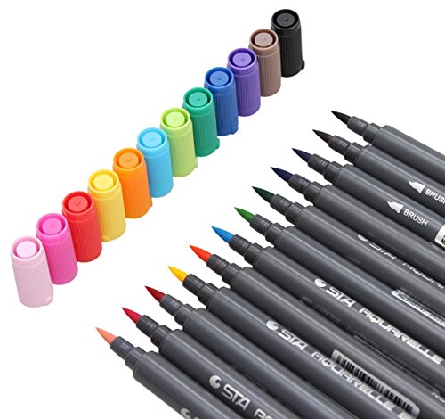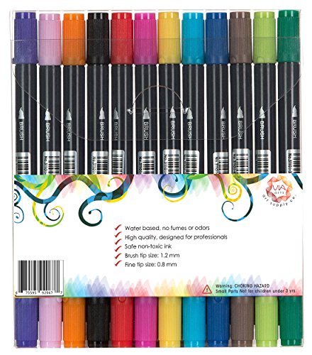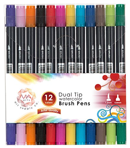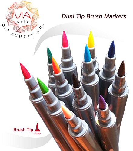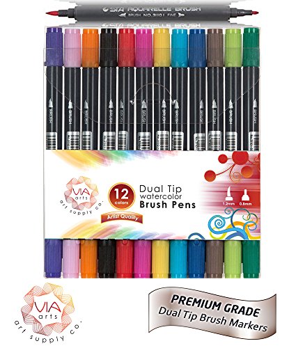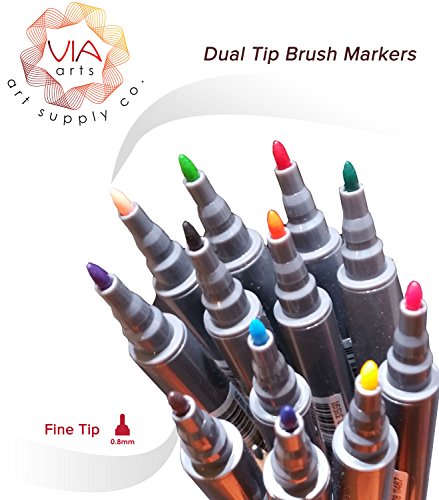 Dual Tip Brush Pens- By Via Art 12 - Brush Tip and Fine Tip Design/Manga Pens
