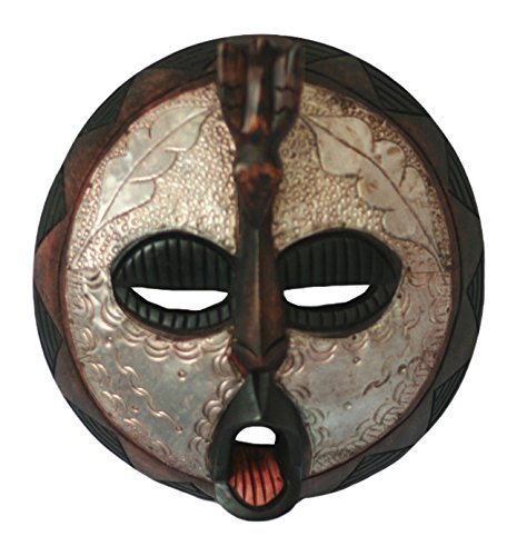 NOVICA Decorative Power Sese Wood and Aluminum Mask, Metallic, 'Power'