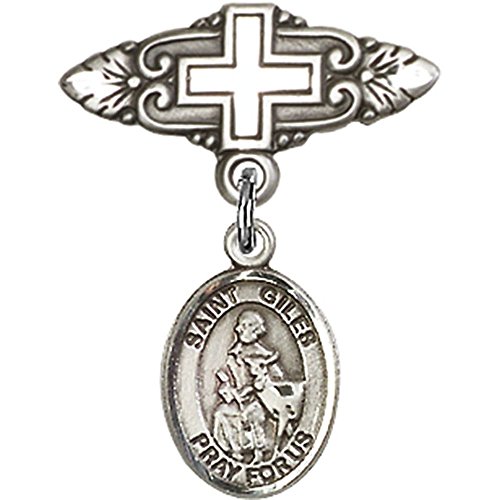 -. Title : Sterling Silver Baby Badge with St. Giles Charm and Badge Pin with Cross 1 X 3/4 inches
