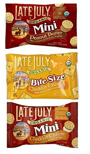 -. Title : Late July Organic Non-GMO Mini Crackers 3 Flavor 12 Individual Pack Variety Bundle: (4) Peanut Butter Minis, (4) Cheddar Cheese Bite Size, and (4) Cheddar Cheese Minis, 1-1.25 Oz. Ea.