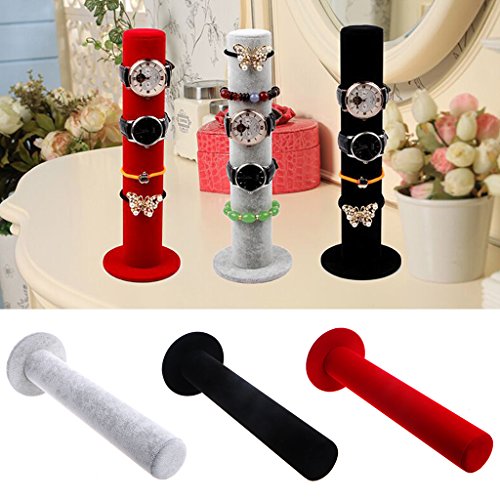 -. Feature : Color: Black,Red,Gray. / Diameter: app. 5cm/1.97''. / Height: app. 30.7cm/12.09''. / Material: Velvet, Density board, PVC. / Applicable scene: watch shop, counters, the mall, trade show, bedroom and gift.