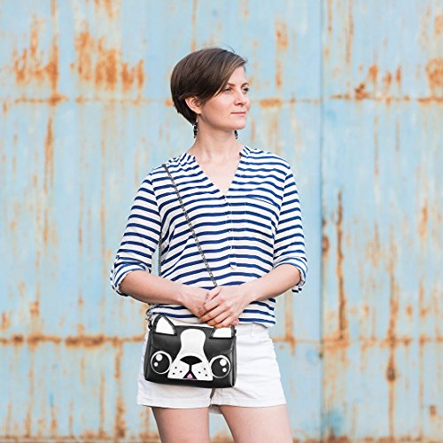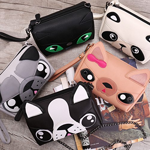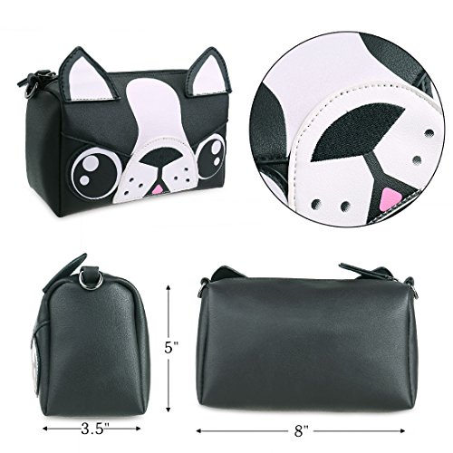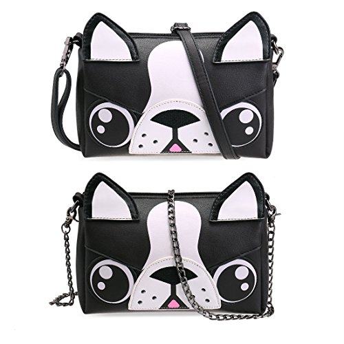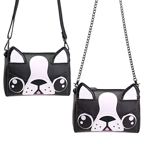 -. Feature : TRUE ANIMAL LOVERS: Adorable boston terrier design made w/ quality PU leather for feel-good fashion / LARGE CAPACITY: Boxy, rectangular style w/ spacious interior to hold phone, keys, makeup, wallet, etc. / WEAR IT YOUR WAY: 3 detachable straps to match your style - Faux Leather: 50in; Chain: 54in; Wrist: 5.5in / SILKY INTERIOR: Main compartment features soft lining and a side pocket for small items / DETAILS - Material: Faux leather; Closure: Zipper; Max. Opening: 5 inches