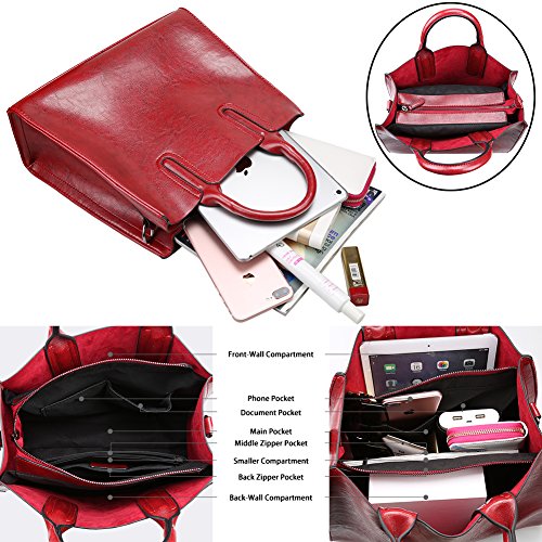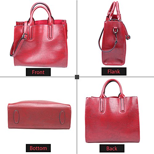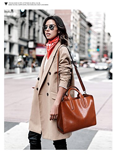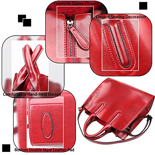 Fantastic Zone Oil Wax Leather Women Top Handle Satchel Handbags Shoulder Bag Purse Messenger Tote Bag