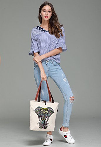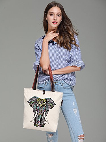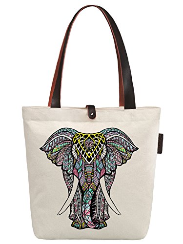 So'each Women's Animal Elephant Graphic Canvas Handbag Tote Shoulder Bag