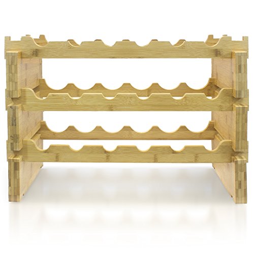 Sorbus 3-Tier Stackable Bamboo Wine Rack— Classic Style Wine Racks for Bottles— Perfect for Bar, Wine Cellar, Basement, Cabinet, Pantry, etc.— Holds 18 Bottles (3-Tier, Natural)