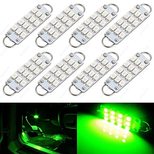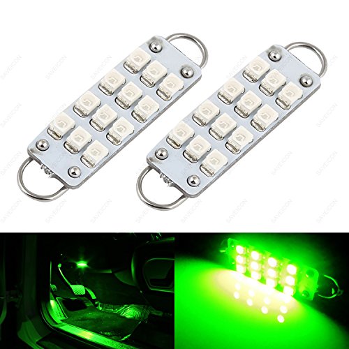 SAWE - 44mm 12-SMD 3528 Festoon LED Bulbs For Car Side Door Courtesy Rigid Loop 1.73" LED Light Bulbs 561 562 567 (2 pieces) (Green)