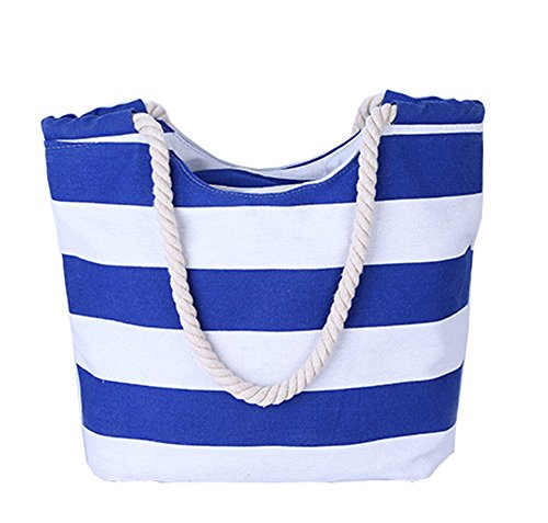 Pulama Womens Large Beach Tote Canvas Shoulder Bag Wave Striped Anchor Summer Handbag Top Handle Bag Straw Beach Bag (Top Handle Blue)