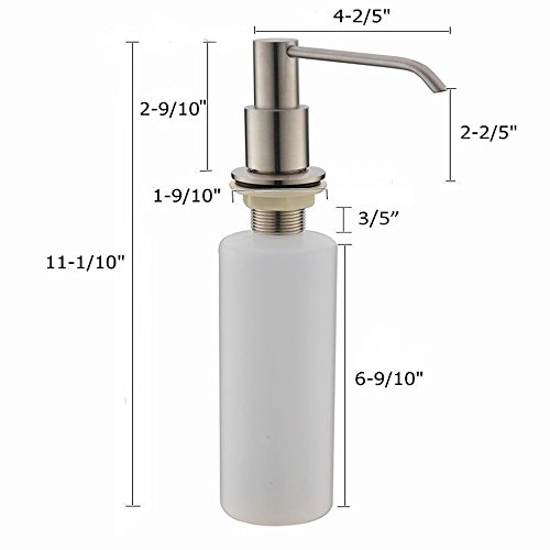 1.VAPSINT stainless steel sink soap dispenser :height 11.1'',plastic bottle width 2'' ,pump head with 4.4" reach nozzle.