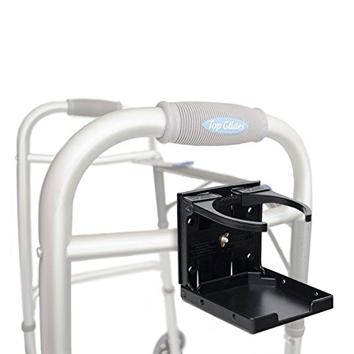 - VERSATILE HOLDER. This drink holder clips onto most walkers, wheelchairs, transport chairs, and bed rails. It ideally mounts onto a 1" tube frame, but if your frame is smaller in size, you can use the two included adhesive pads to widen the diameter for a proper fit.