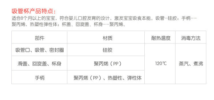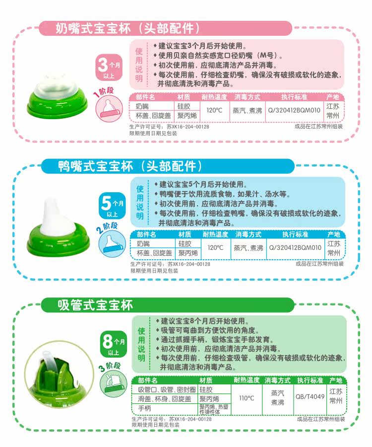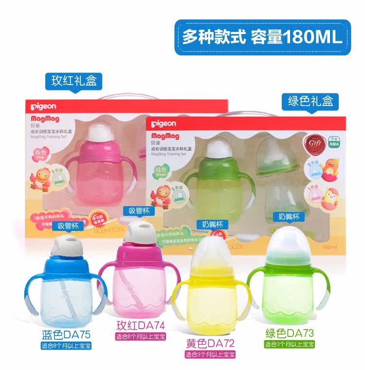 | 型号: | (DA72)奶嘴杯 适合3个月以上宝宝 (DA73)鸭嘴杯 适合5个月以上宝宝 (DA75/DA74)吸管杯 适合8个月以上宝宝 |