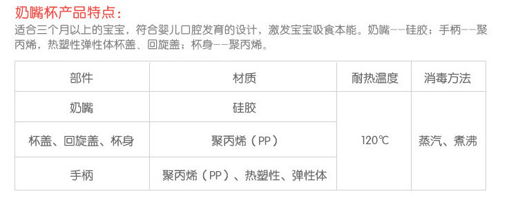 | 耐热温度: | 120°C | 杯嘴: | DA72(宽口M奶嘴) DA73(鸭嘴式) DA74 DA74(吸管式) |