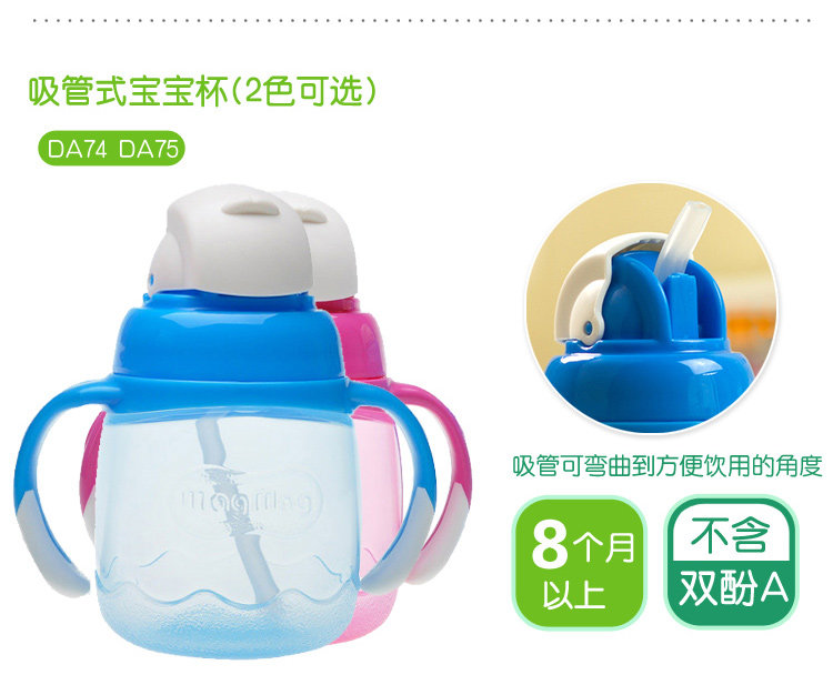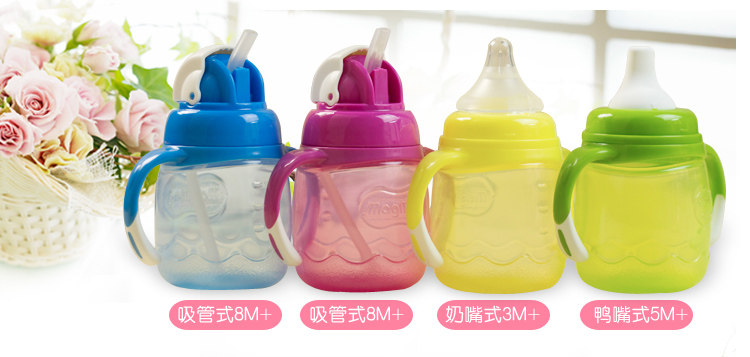 magmag婴儿吸管杯 宝宝鸭嘴学饮杯 奶嘴喝水杯带手柄