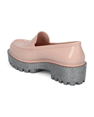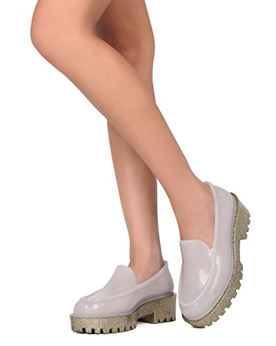 Women Jelly Loafer - Glitter Lug Sole Slip On Creeper - Trendy Fashion Fun Platform Shoe - PANA...