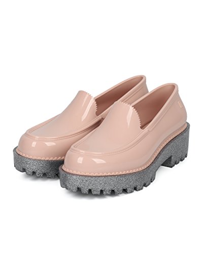 Product Description A classic look with a trendy twist, these loafers are made with MelFlex PVC upper, faux stitch details and jagged tongue opening. Also made with a glittery lug sole, cushioned insole and easy to slip on design. 0